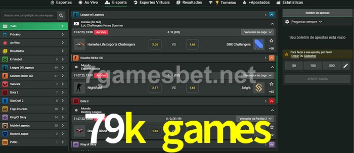 O 79k games oferece uma grande seleção de opções de apostas em e-sports com probabilidades competitivas
